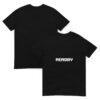 • Double-needle stitched collar, shoulders, armholes, cuffs, and hem