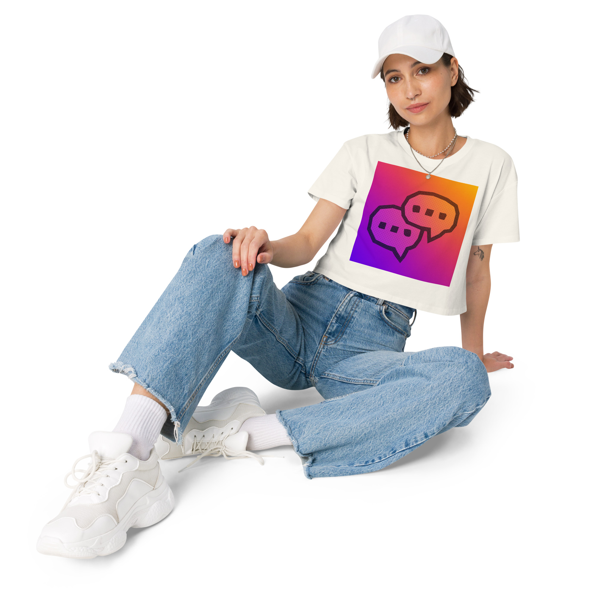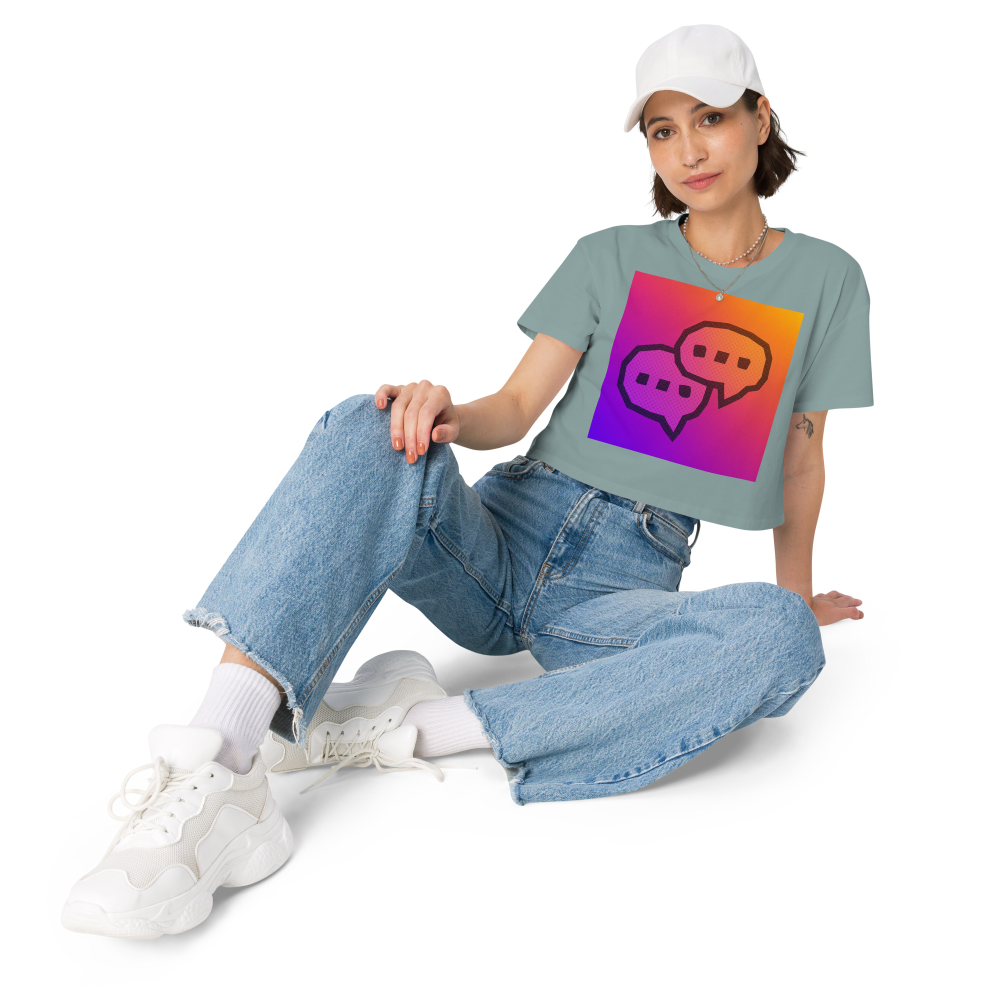 This crop top is made of 100% combed cotton, which makes the shirt extremely soft and more durable than regular cotton shirts. The relaxed fit and dropped shoulders ensure comfortable wear, while the cropped length makes it perfect for spring and summer.